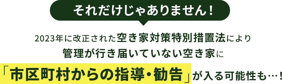 空き家の管理が行き届いてないと、ご近所に迷惑がかかり苦情にまで繋がってしまうケースがあります。